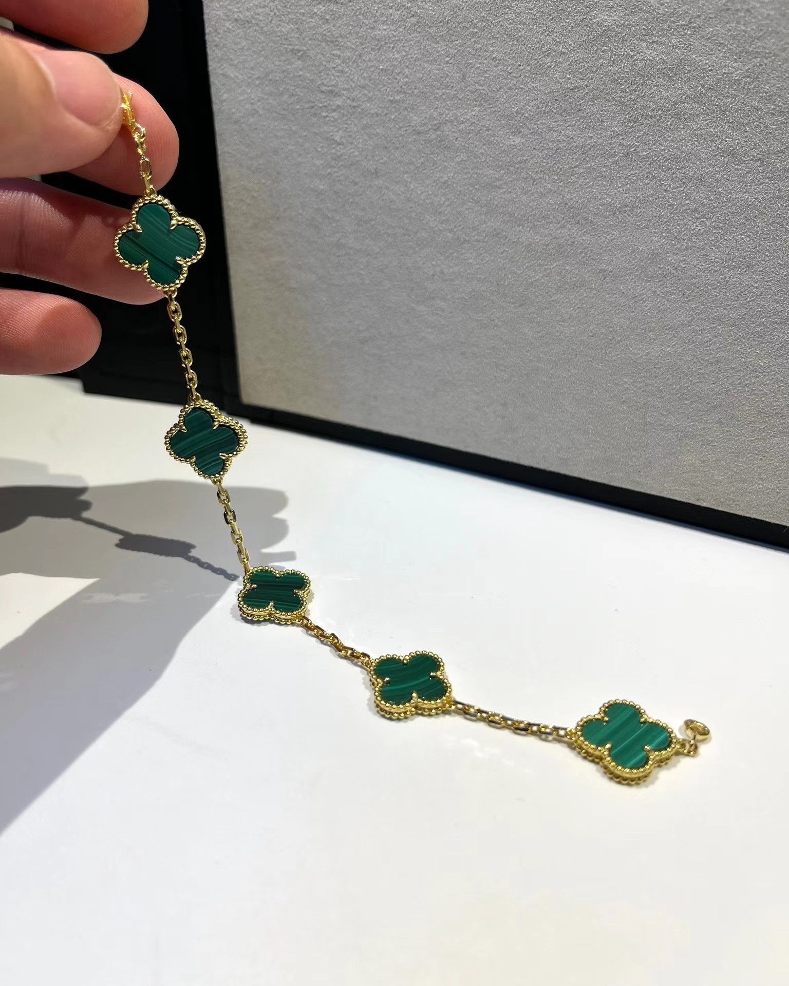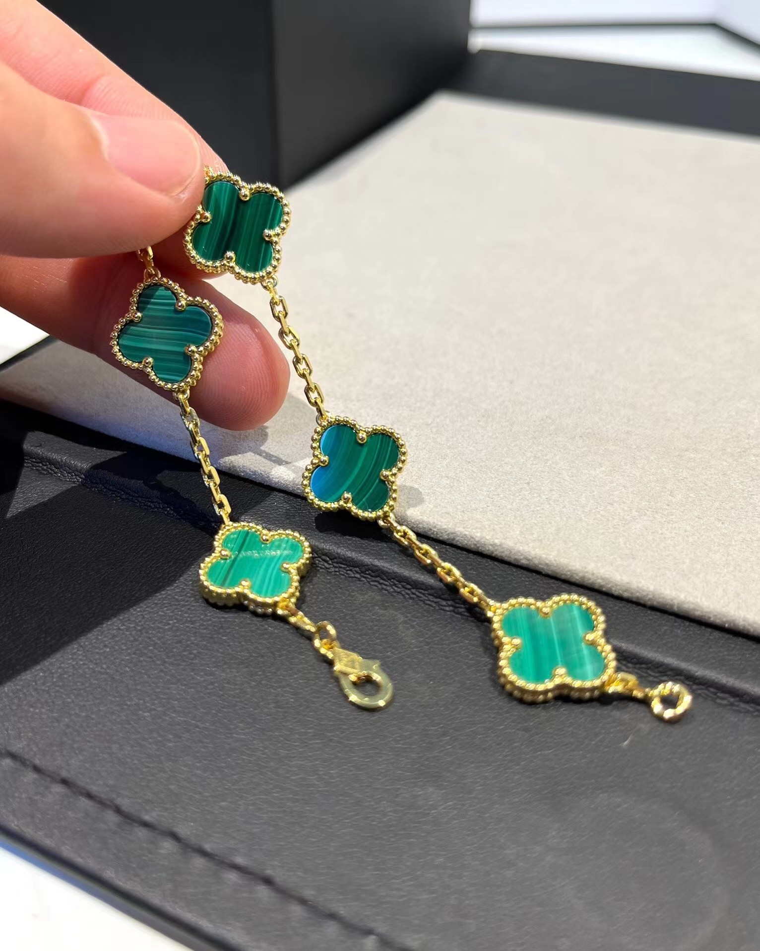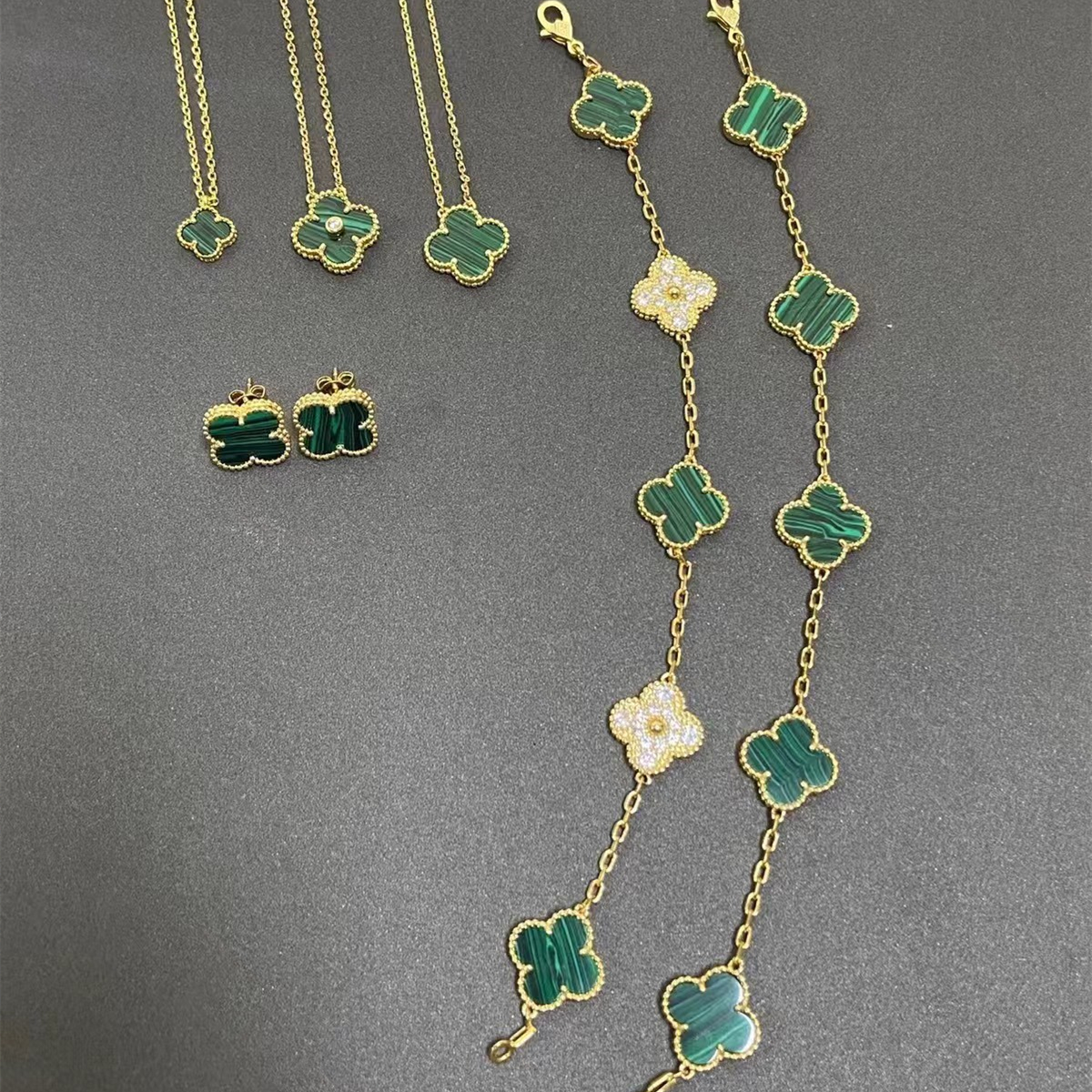 Van Cleef & Arpels Four-leaf clover malachite bracelet necklace