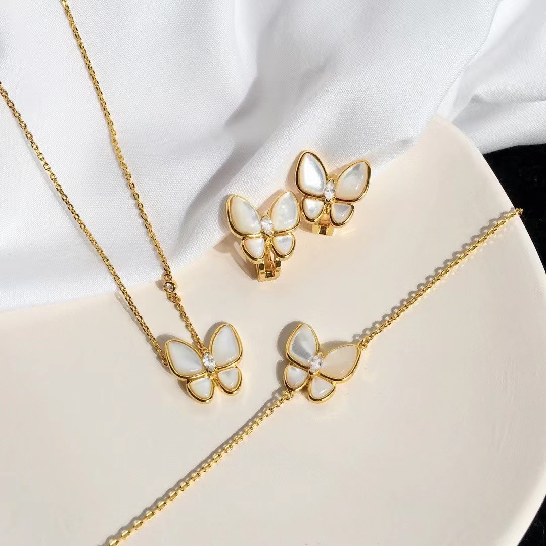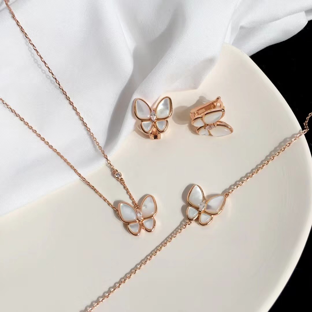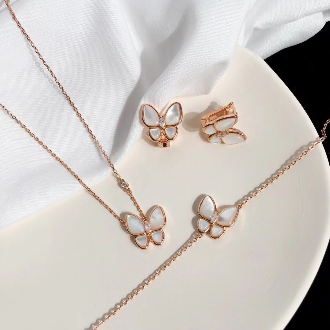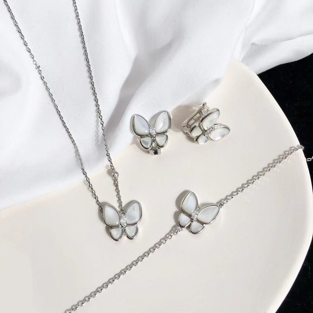 Van Cleef & Arpels White Fritillary butterfly bracelet Earrings
