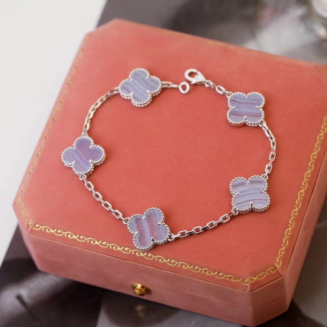 Van Cleef & Arpels Four-leaf clover purple chalcedony bracelet