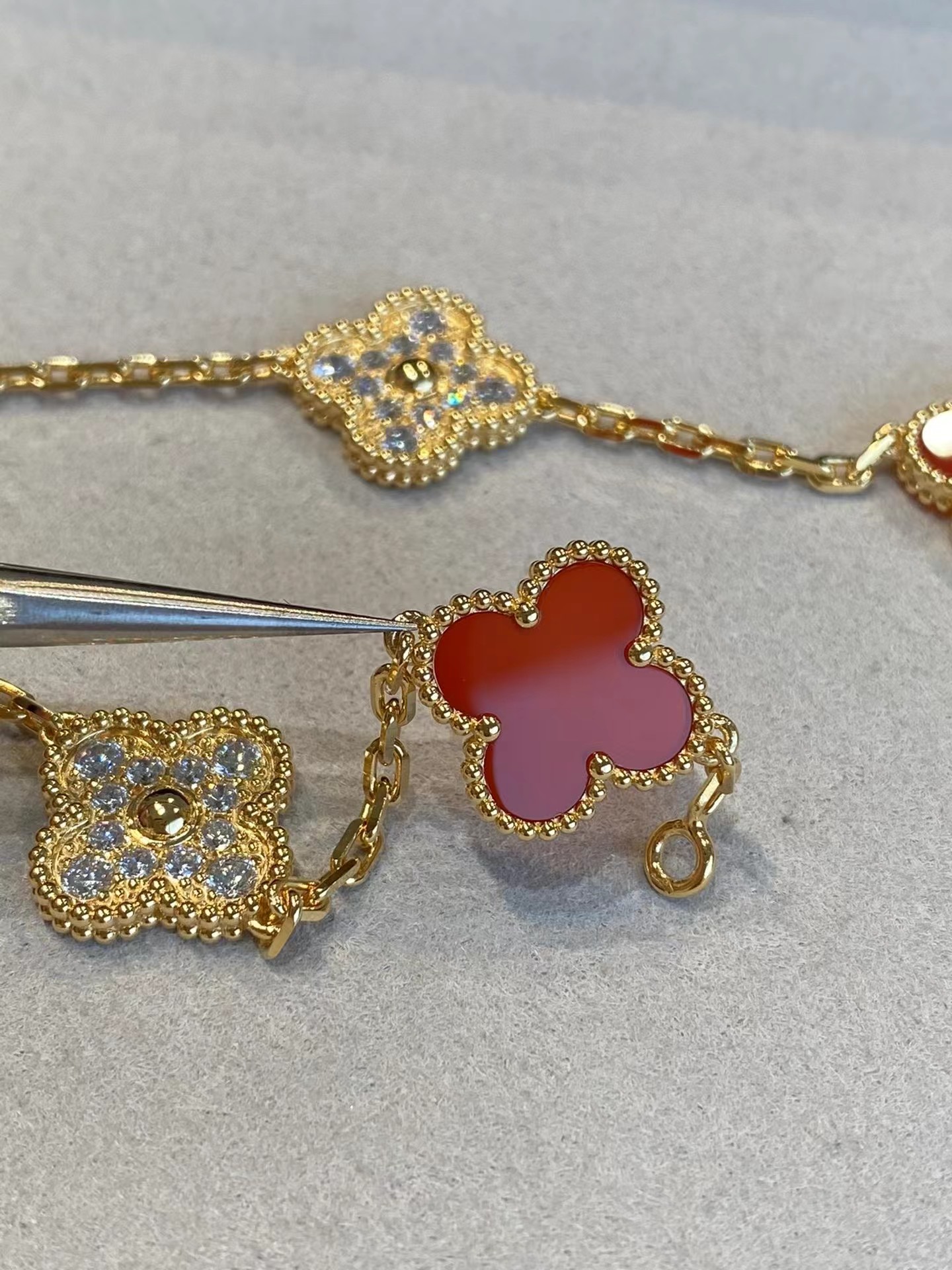 Four-leaf clover carnelian bracelet