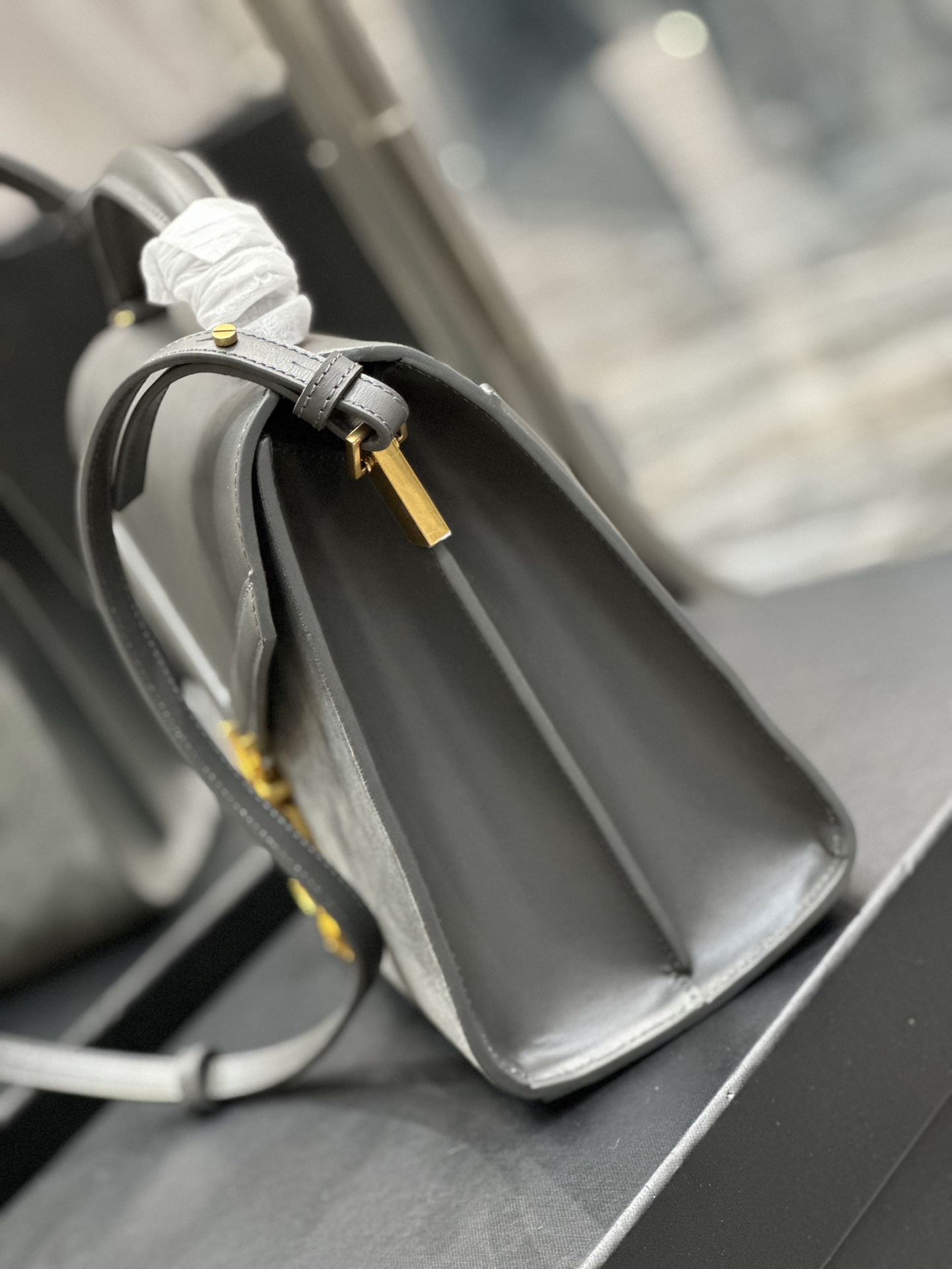 CASSANDRA MEDIUM TOP HANDLE BAG IN GRAIN DE POUDRE EMBOSSED LEATHER
