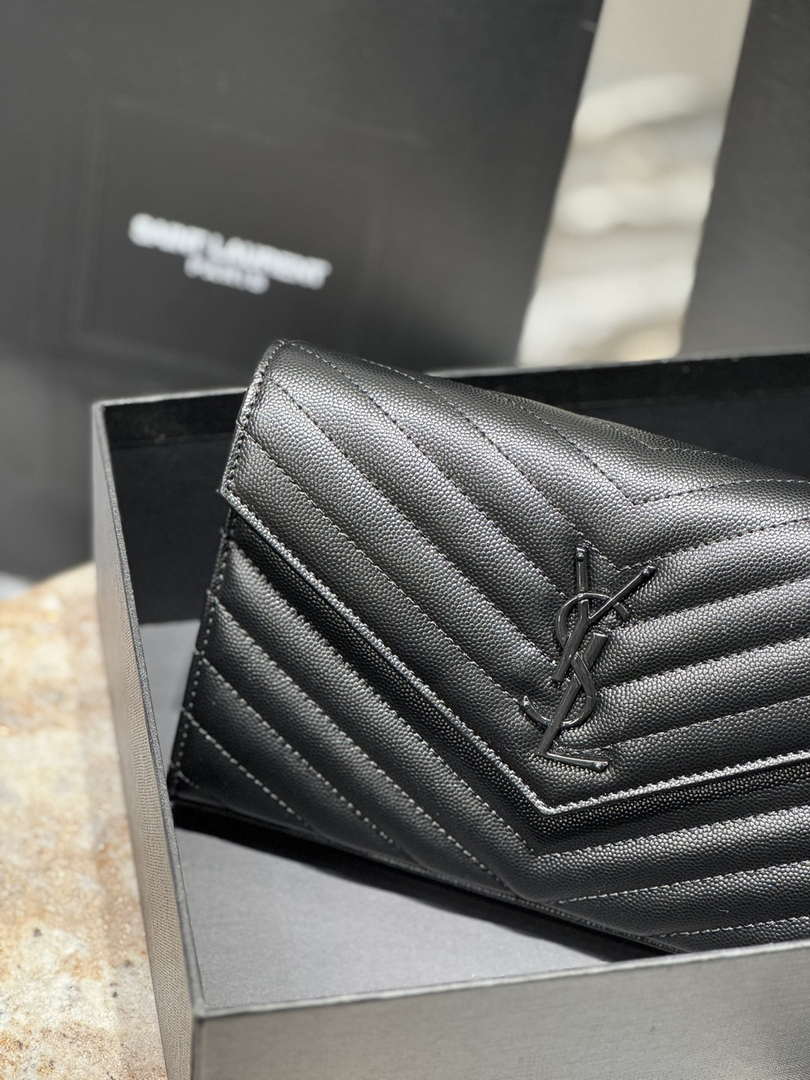 • YSL 377828 Classic Cassandre chain wallet in grain de Poudre leather black Hareware