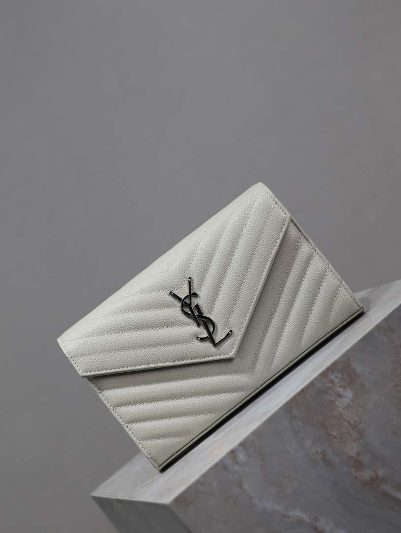 • YSL 377828 Classic Cassandre chain wallet in grain de Poudre leather White Silver