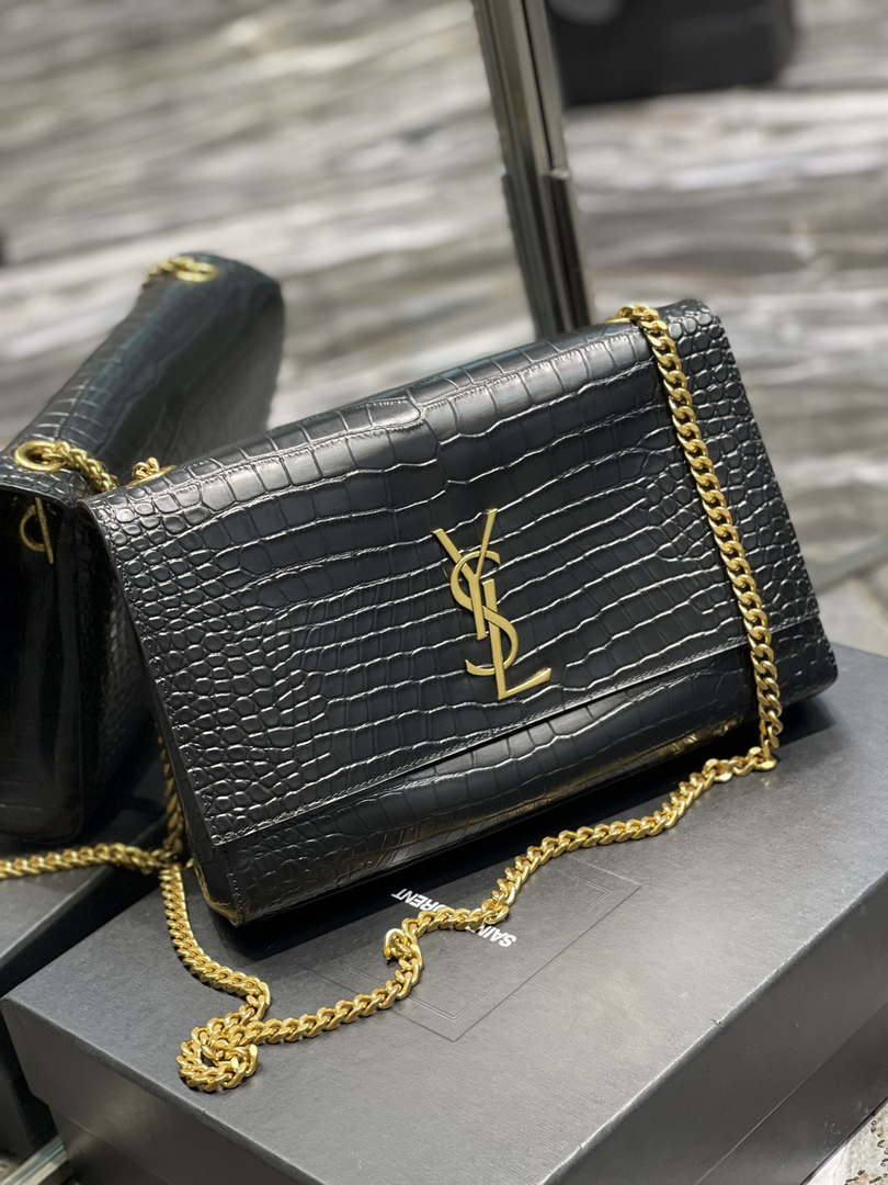 • YSL 553804 Saint Laurent Reversible Medium Kate in Crocodile Leather Black