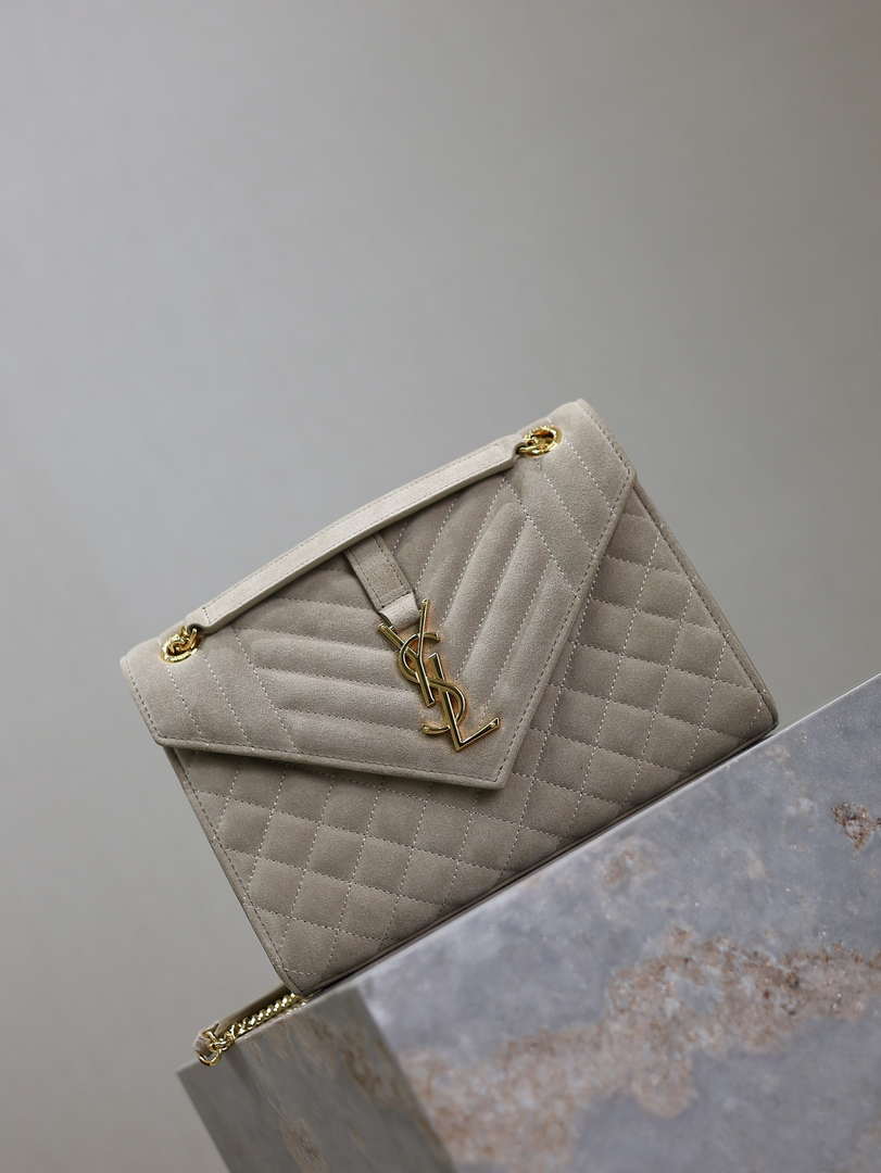 Timeless Envelope Flap Bag In Grain De Poudre Embossed Leather, Featuring Chevron And Diamond Quilt Overstitching.
