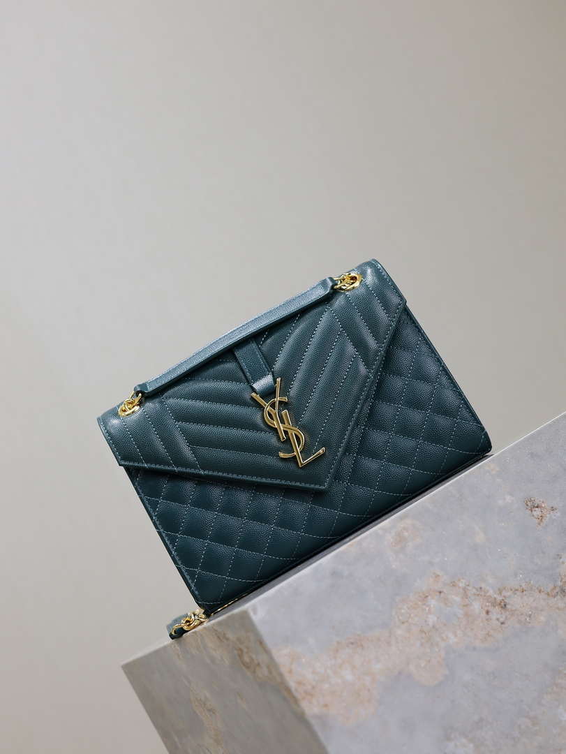 • YSL 600185 Envelope Meduim In Quilted Grain De Poudre Embossed Leather Turquoise