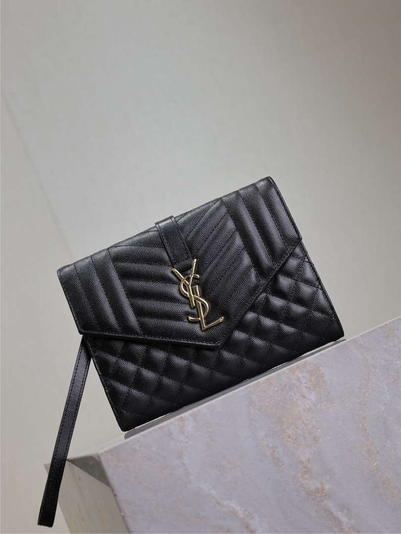 • YSL 617662 Cassandre MATELASSÉ Flap pouch in grain de Poudre leather Black