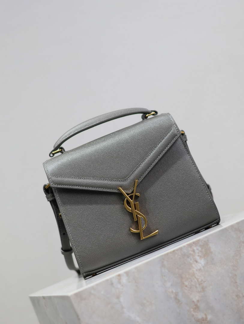 • YSL 623930 Cassandra Mini Top Handle Bag In Grain De Poudre Embossed Leather Gray