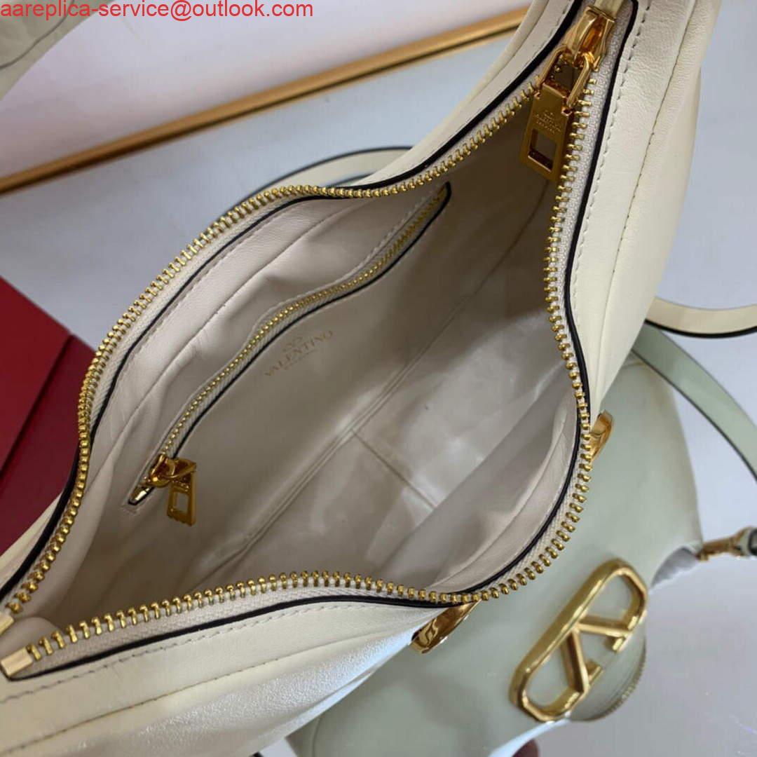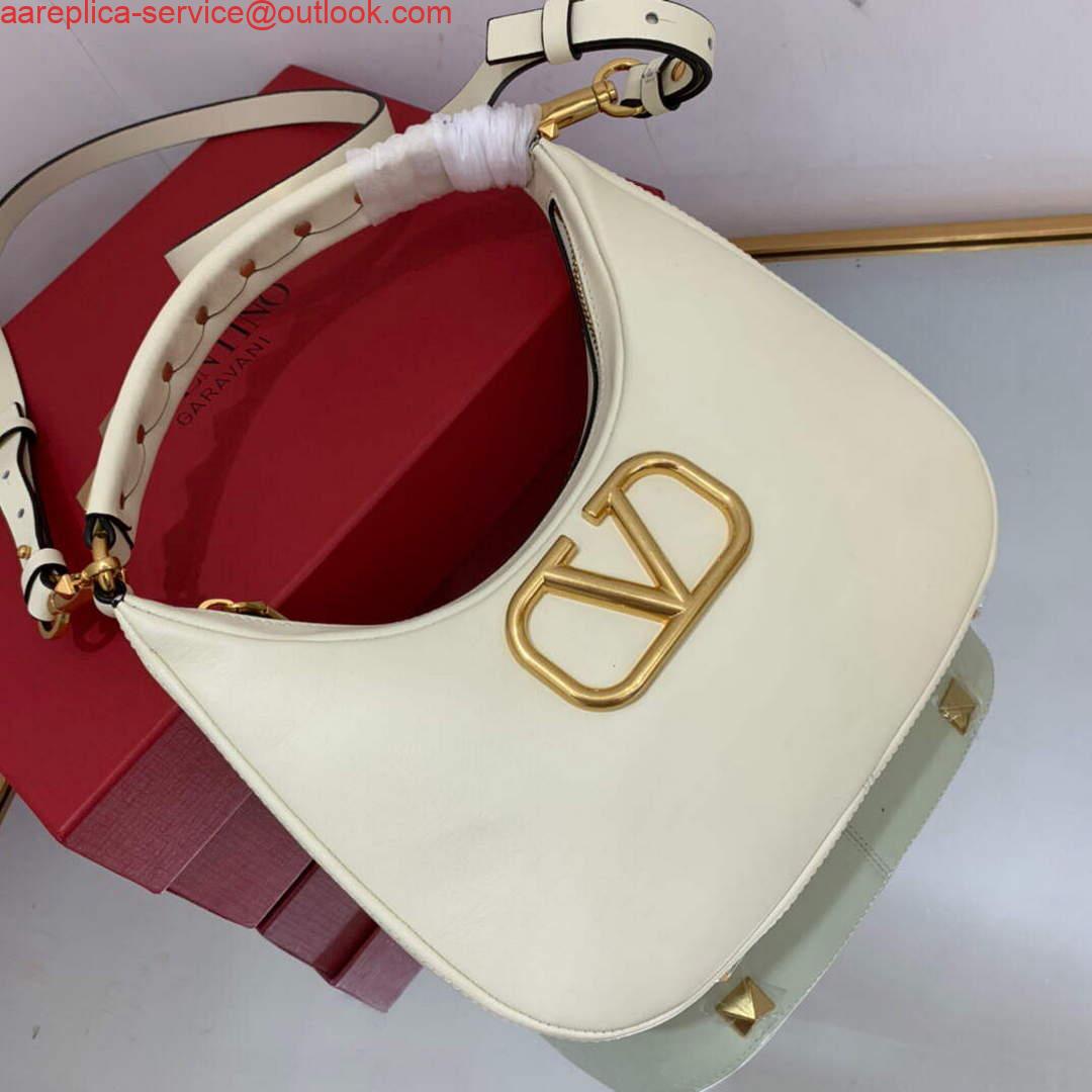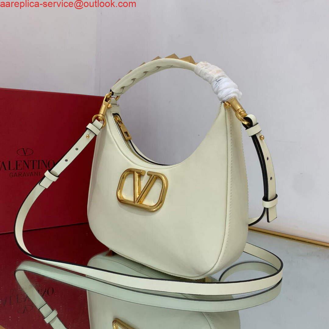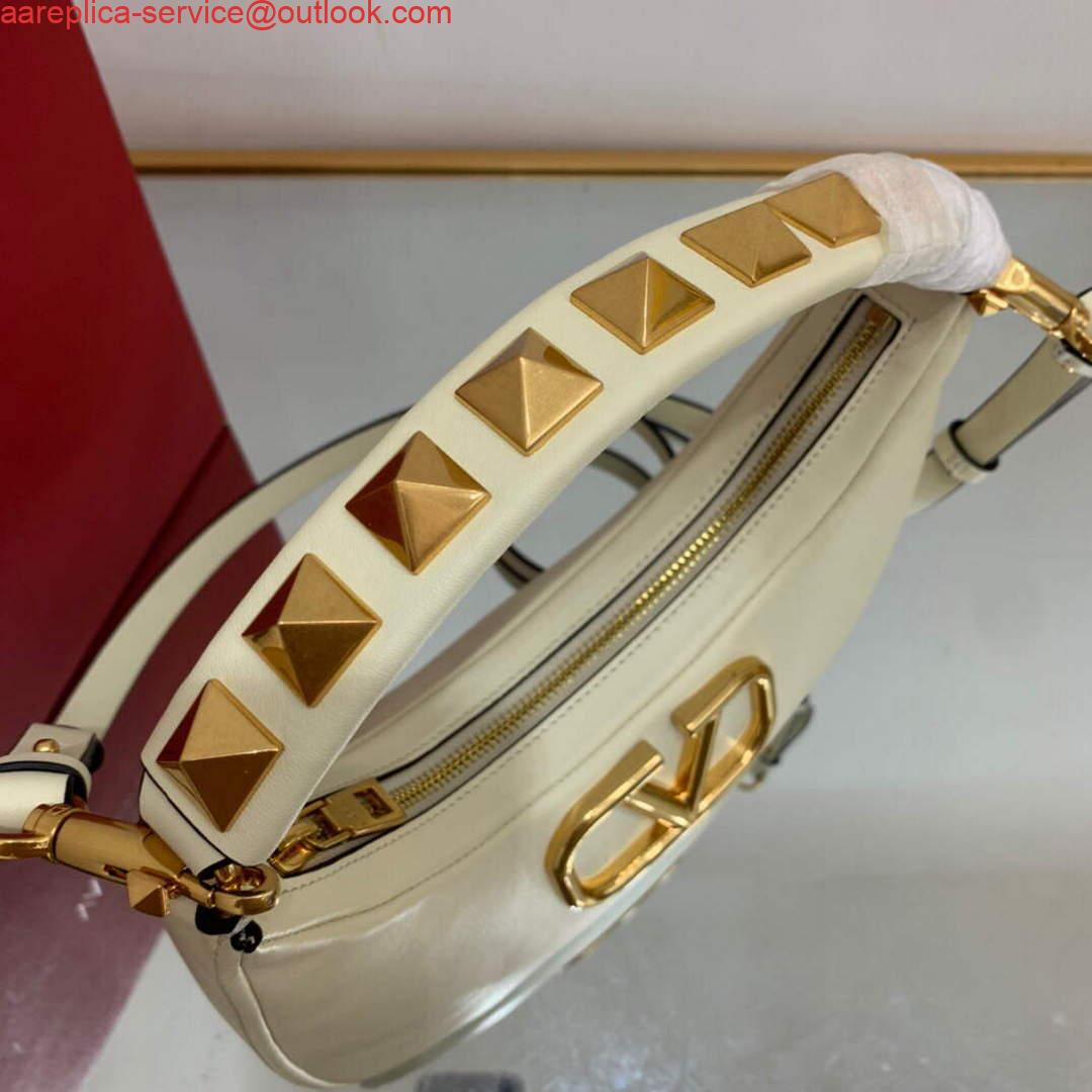 NEW IN Valentino WB0K69EIM Stud Sign Calfskin Hobo Bag Light Ivory