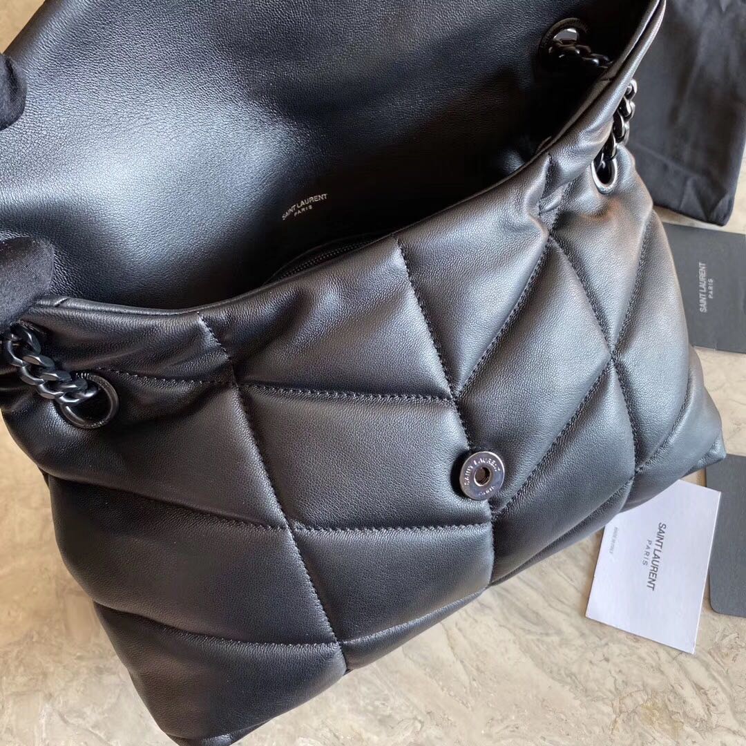 Saint Laurent Lambskin Quilted Maxi Icare Shopping Tote Black