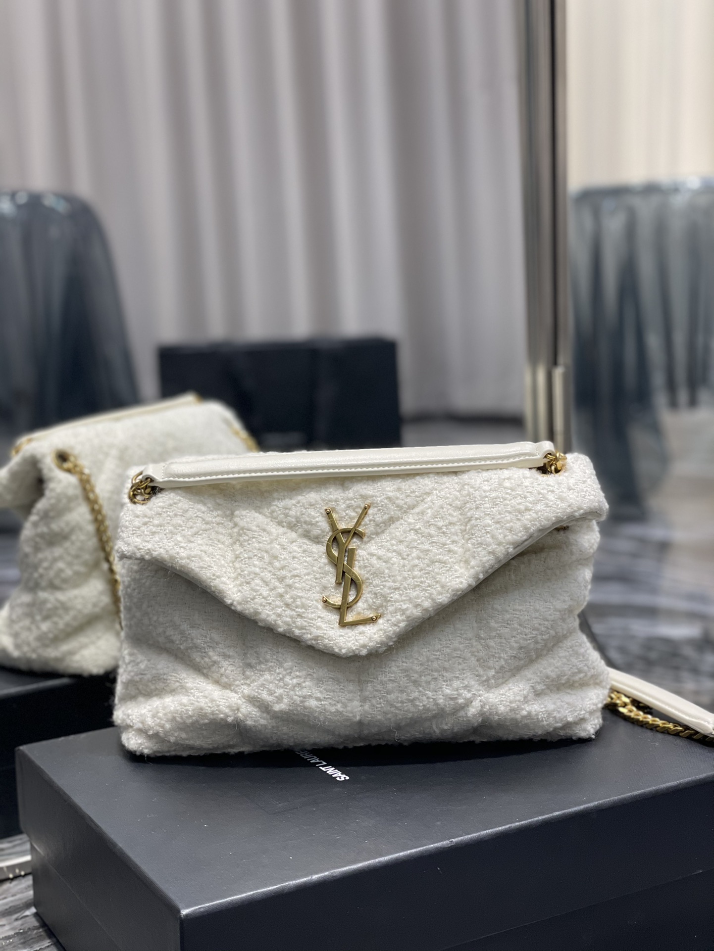 YSL 742828 Le 37 In Vegetable-Tanned Leather White