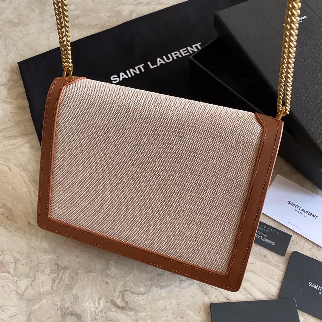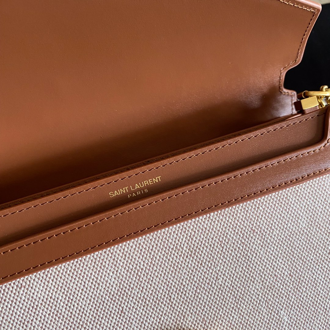 YSL 553804 Saint Laurent Medium Kate in Raffia with Brown Leather