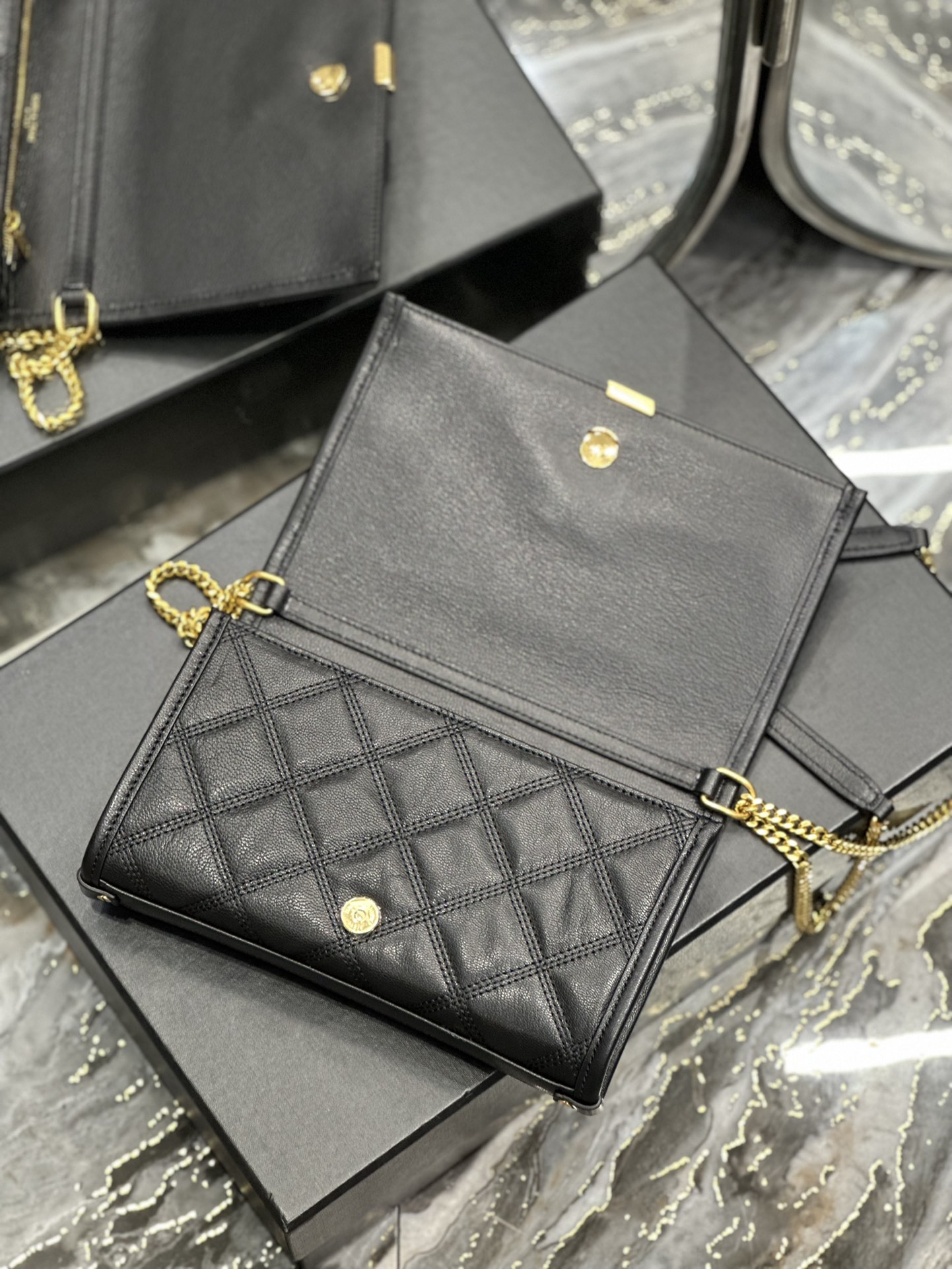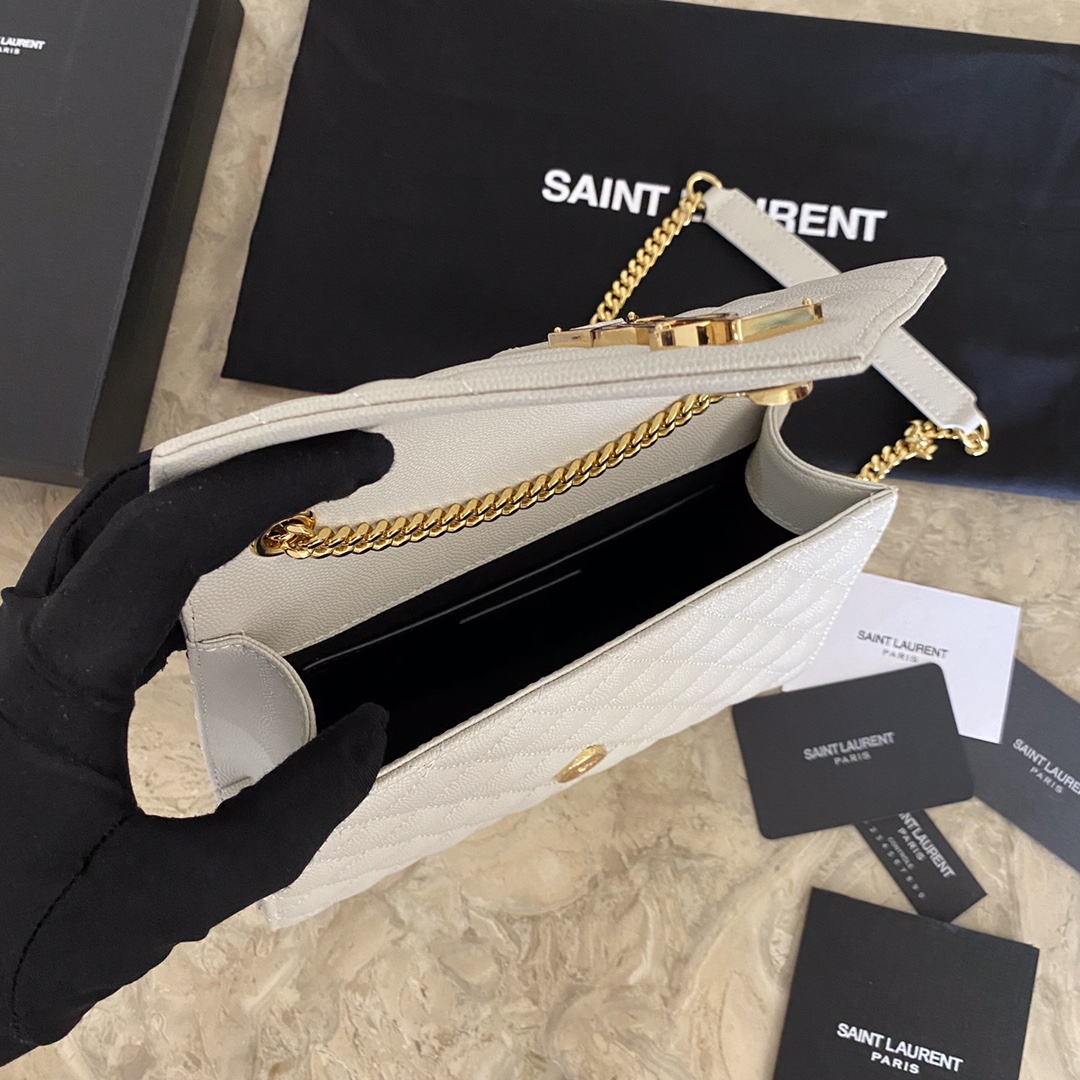YSL 600195 Envelope Small In Quilted Grain De Poudre Embossed Leather Caramel