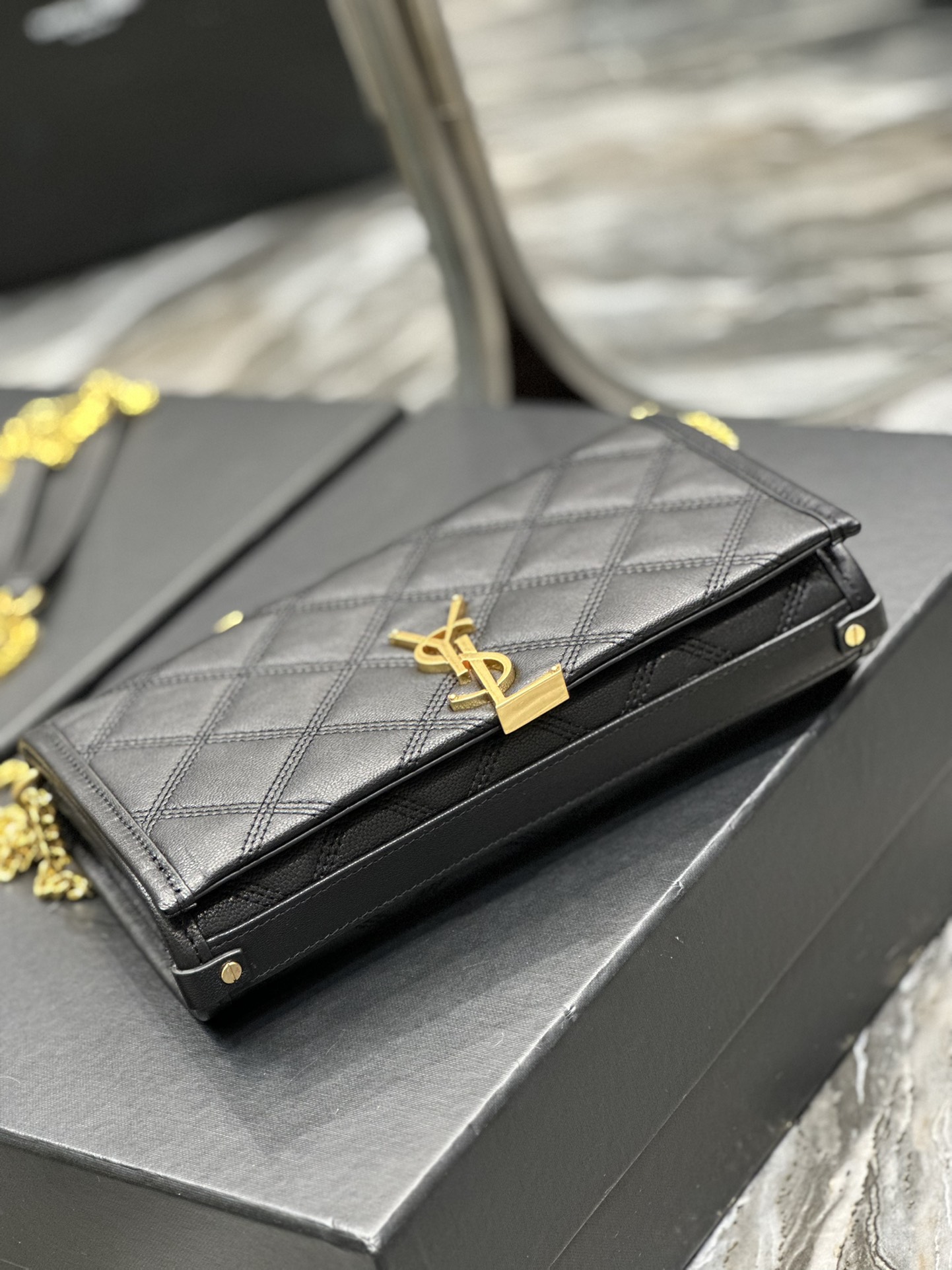 YSL 672738 Monogram Mini Nolita In Lam ̈¦ Leather Gold