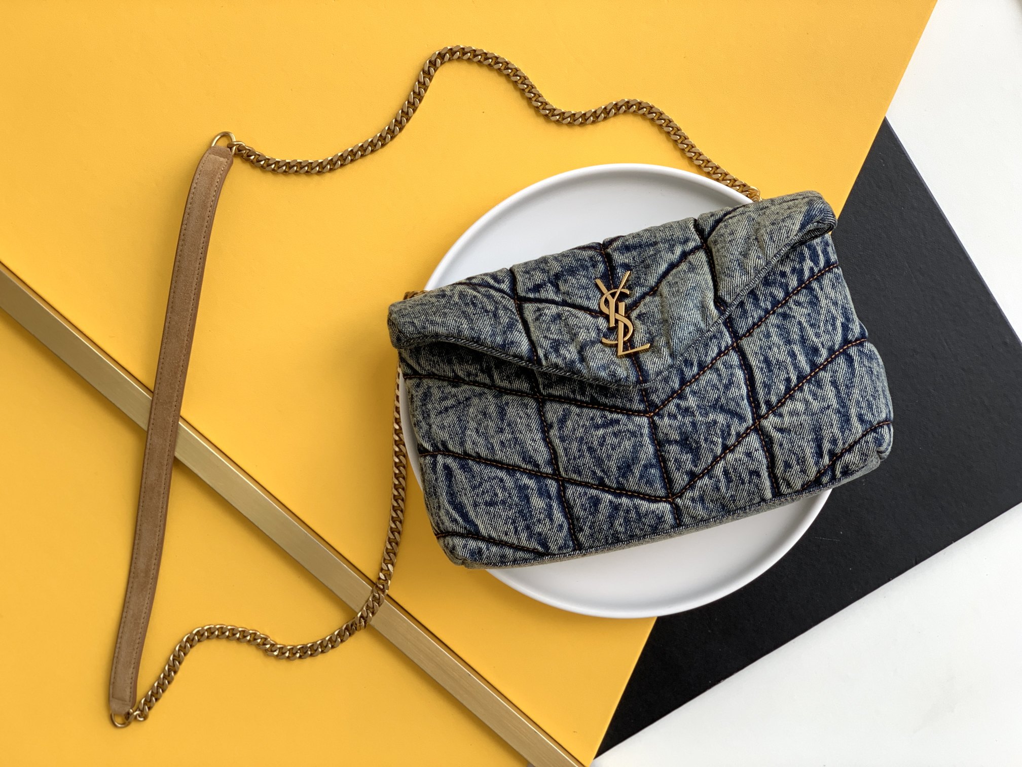PUFFER MEDIUM CHAIN BAG IN DENIM AND SMOOTH LEATHER