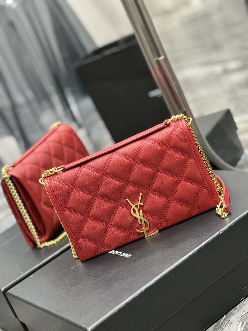 YSL 585031 Saint Laurent Becky Chain Shoulder Bag Leather Red