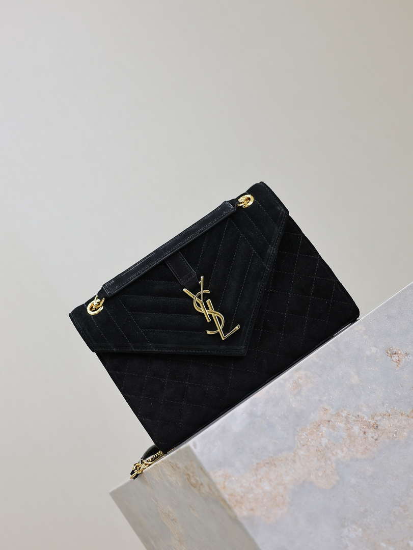 YSL 600185 Envelope Meduim In Black Suede Leather