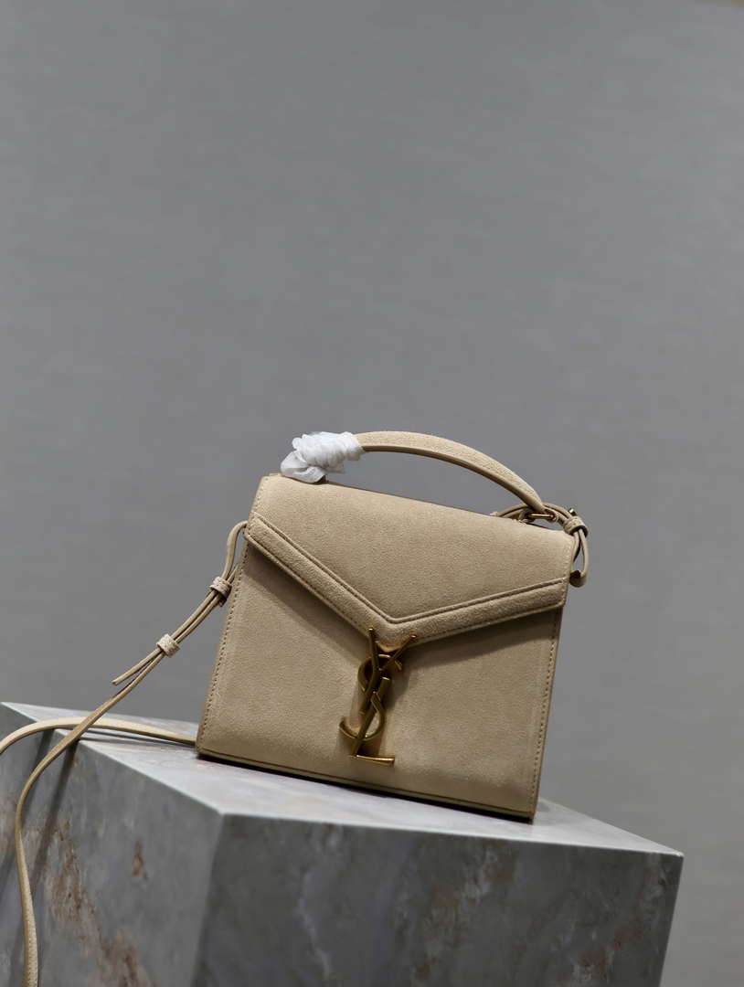 YSL 623930 Cassandra Mini Top Handle In Box Saint Laurent Suede Beige