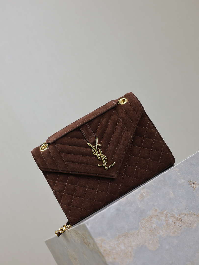 YSL 600185 Envelope Meduim In Dark Brown Suede Leather