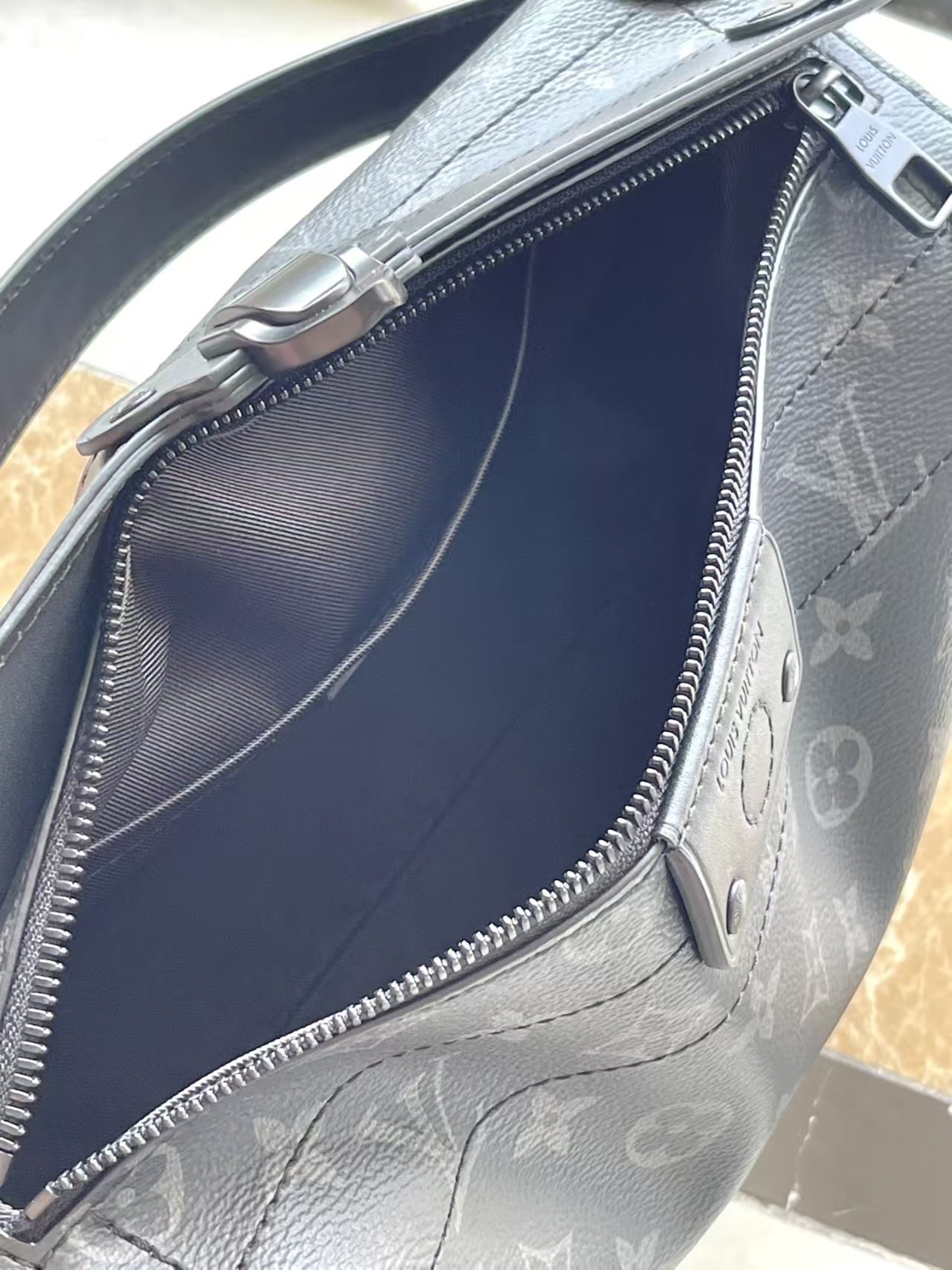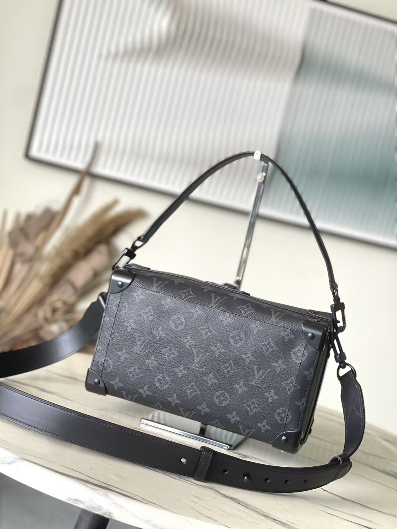 本品は、柔らかなモノグラム エクリプス コーティング キャンバスを素材に、洗練された細身のシルエットが特徴のバッグです。レザーショルダーストラップにより、手持ち、肩掛け、斜め掛けと、様々なスタイルでお楽しみいただけます。